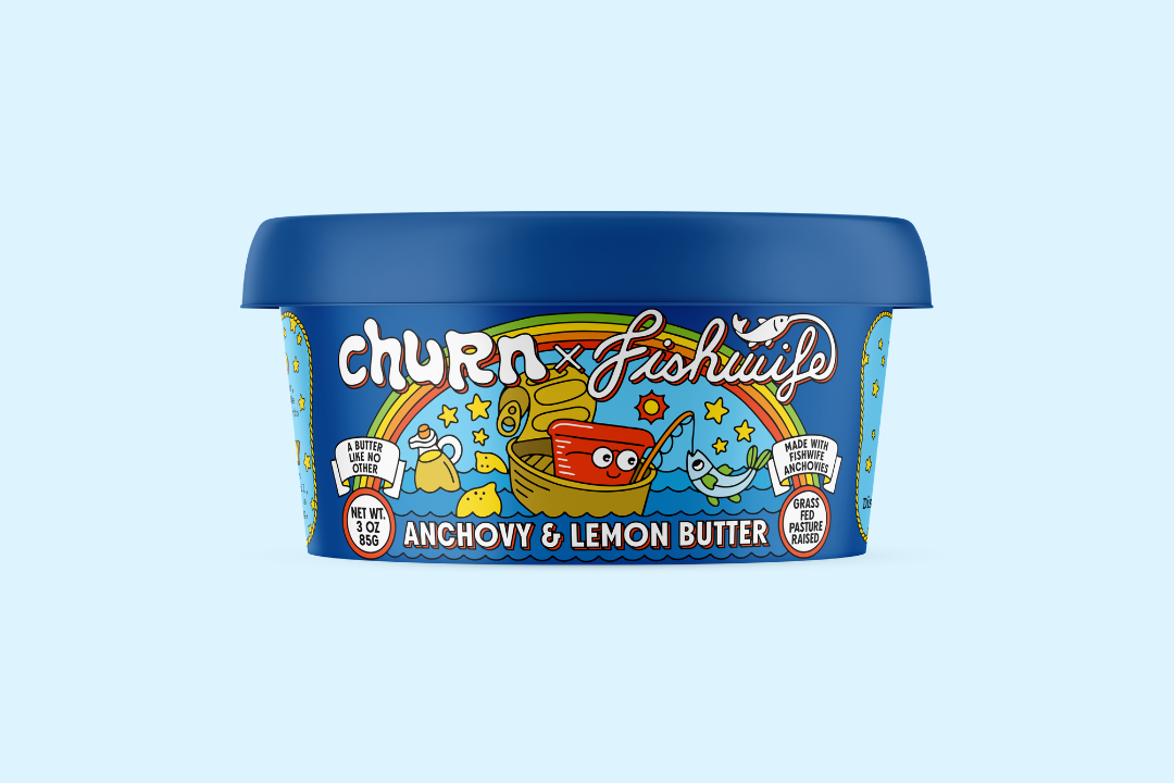 Our Anchovy & Lemon Butter is the creamy, lip-smacking butter of your dreams. We start with our golden, grass-fed butter and fold in Fishwife’s Cantabrian Anchovies — the best of the best. Then, we cut through the richness with fresh lemon juice, a splash of sherry vinegar, and a touch of sea salt. It's complex, incredibly savory, and absolutely ripping with flavor!